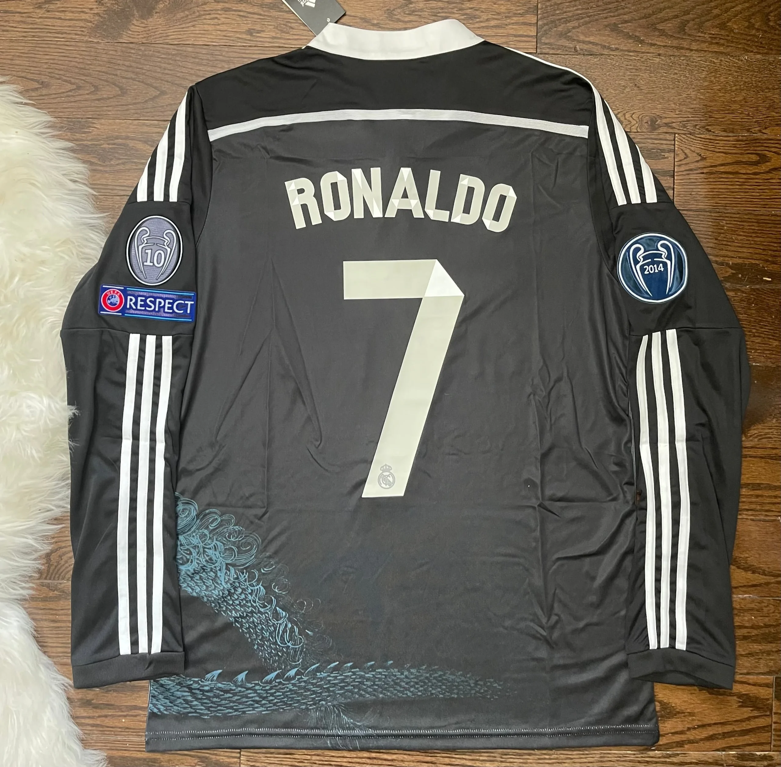 Cristiano Ronaldo Real Madrid Retro Away Dragon Soccer Jersey Long Sleeves 2014/15